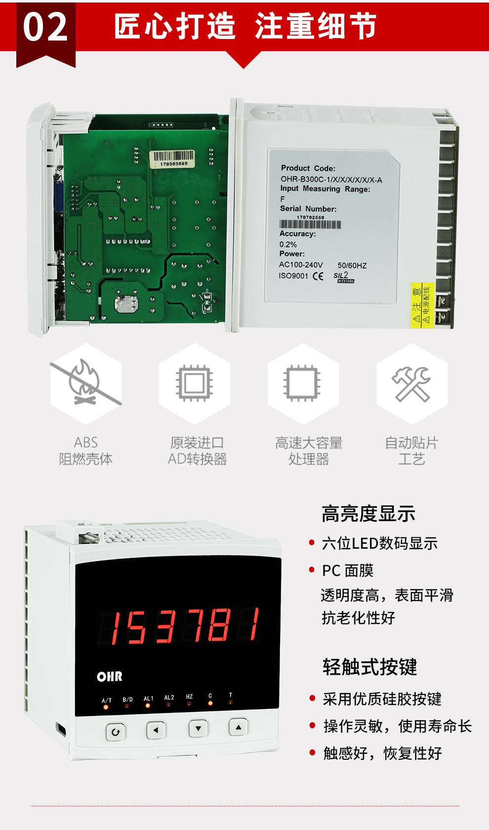 OHR-B300系列計(jì)數(shù)器采用全自動(dòng)貼片封裝工藝,具有很強(qiáng)的抗干擾能力,并具有多種輸出功能和控制功能,多種計(jì)數(shù)模式,廣泛運(yùn)用于電力、石化、冶金、輕工、制藥、航空等諸多領(lǐng)域。
